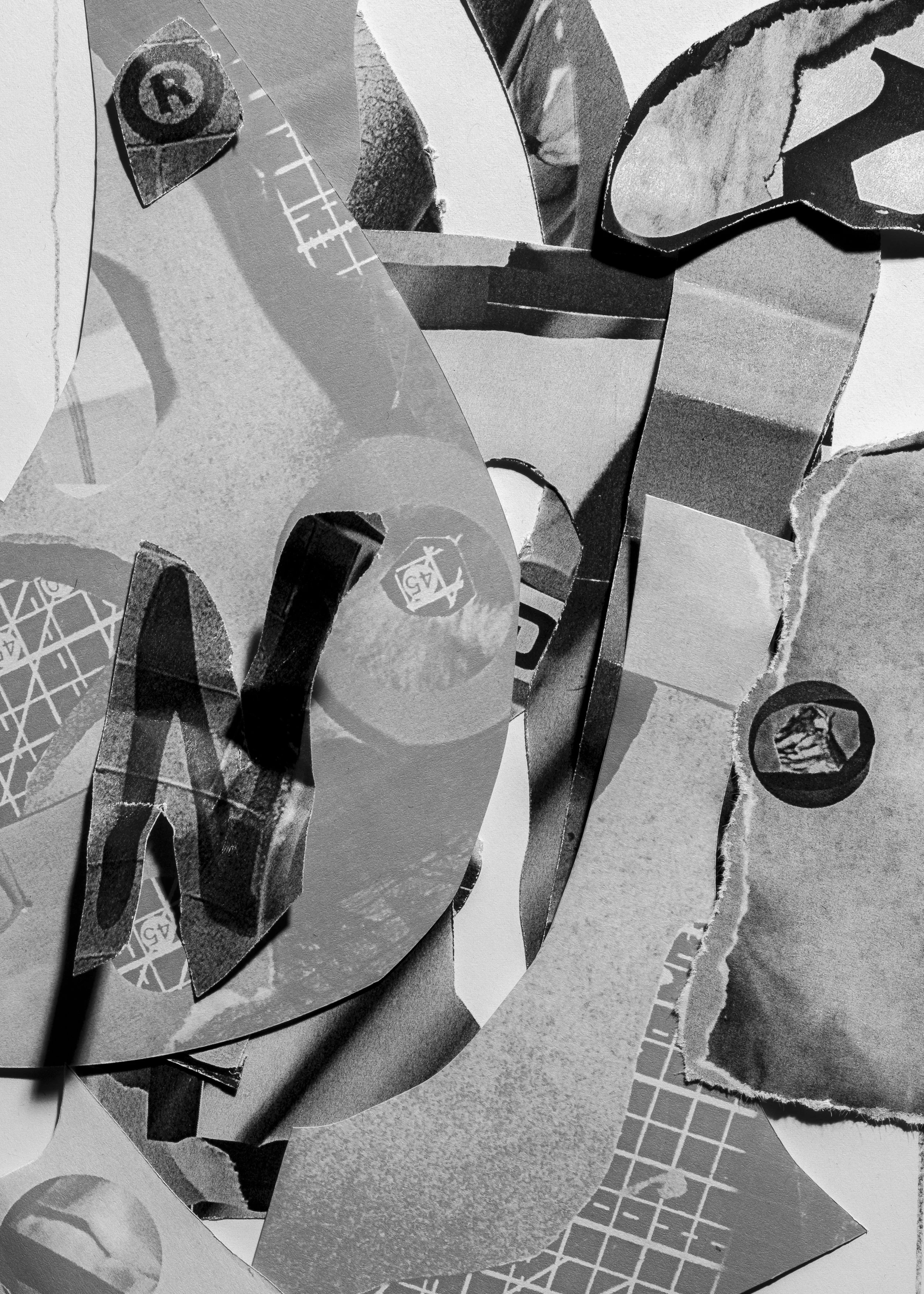In this book, paper isn't merely a canvas; it's an integral part of a wider underlying narrative. It morphs seamlessly between being a tangible object and a printed image, blurring the boundary between digital and analogue worlds. This is further emphasised through the layout of the book. Much like music, where the pauses and silence are as essential as the notes themselves, the spaces on the paper hold significance in Azab’s work. These spaces, sometimes voids, are woven into the narrative, for Azab it’s a visual rhythm where editing and composition are akin to jungle, breakbeat and jazz music.
